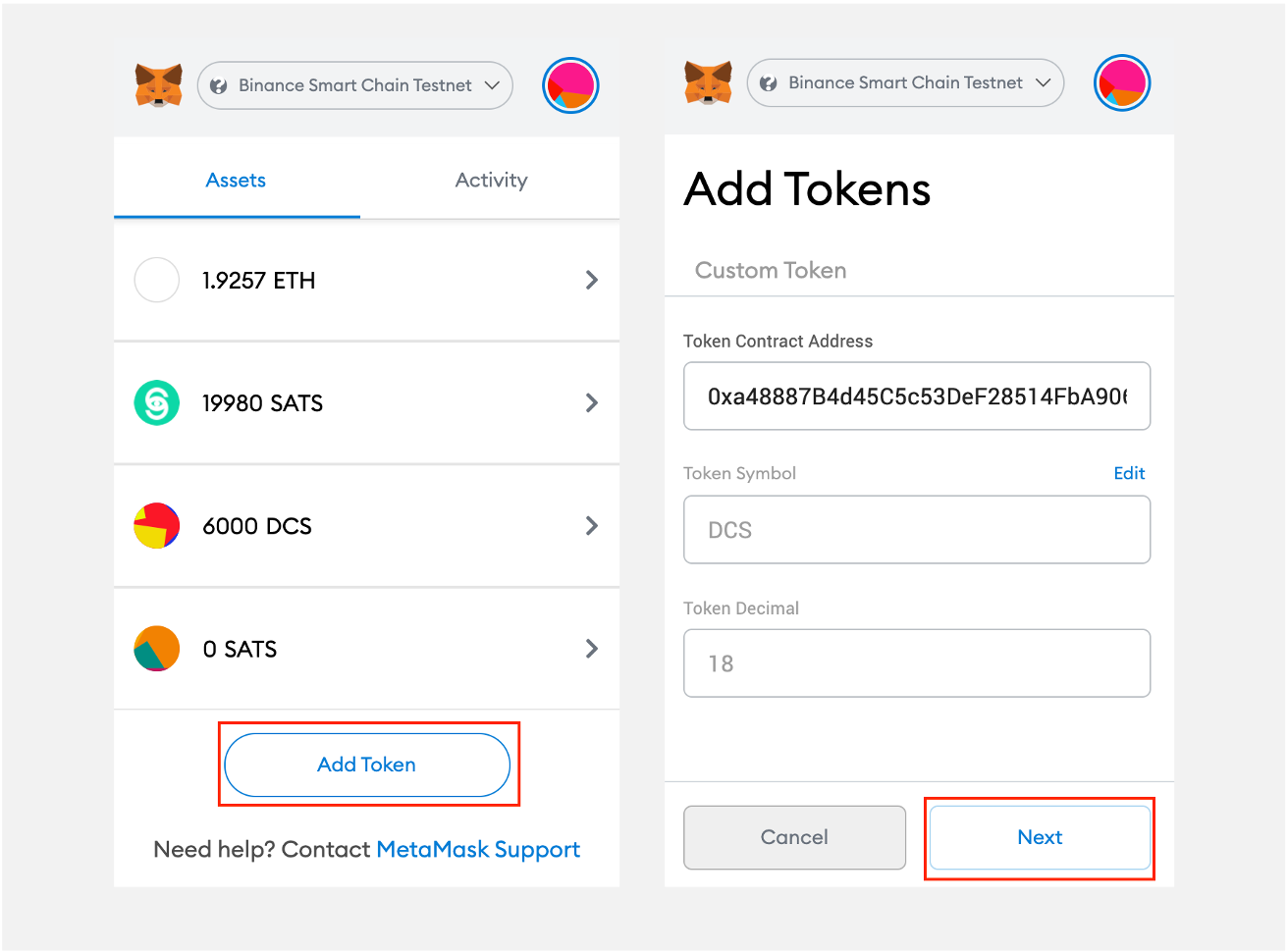 5.Once finished, you need to add DCS tokens in MetaMask to see the balance, the contract address of DCS (unpublished)